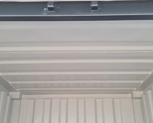 Notre conteneur de stockage 10 pieds dispose d’une ossature réalisée en profils d’acier, épaisseur 3mm, entièrement soudés. Les parois et le plafond sont en tôle laminée d’épaisseur 1,5mm et le plancher est en bois massif, épaisseur 25mm, traité anti-humidité. Il est équipé d’un volet de protection pour le cadenas.