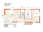 Comfort – une variante finie avec une salle de bain et une cuisine, des meubles de cuisine, des meubles de salle de bain, des ustensiles sanitaires et des appareils électroménagers, mais sans meubles dans les chambres.