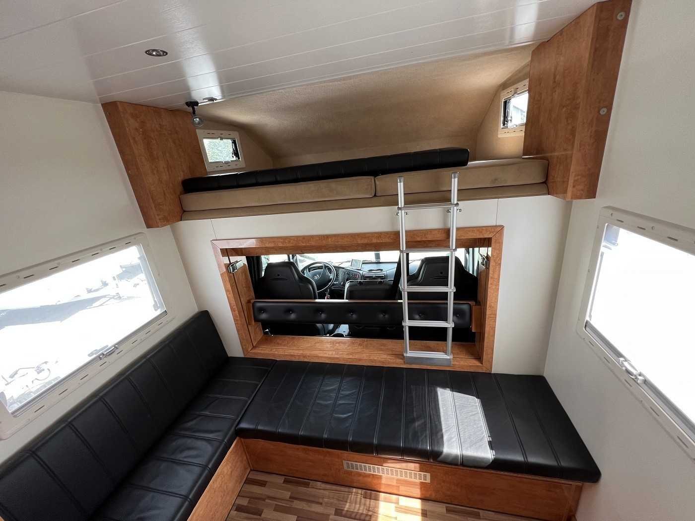 Alcôve avec lit et 2 fenêtres au dessus de la cabine conducteur